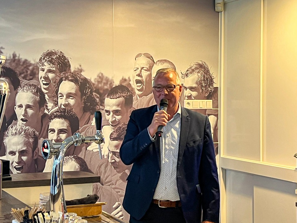 Maar ik richt mij hier speciaal op jullie sponsors van VV Dongen. Want als gemeentebestuur hebben we super waardering voor jullie bijdrage aan verenigingen en de sponsoring van evenementen. Dan kijk ik bijvoorbeeld naar Marco en Ine van Strien. Marco, we mogen altijd met je mee-eten. Hier en tijdens het onlangs gehouden Oranje Park Festival en noem maar op. Dit geldt uiteraard ook voor alle andere sponsors die ieder op hun eigen manier een bijdrage leveren aan deze club. Geweldig hoe jullie de verenigingen en evenementen blijven ondersteunen, in goede en lastige tijden. Ik wil daar mijn waardering voor uitspreken. Een applaus voor jezelf.
